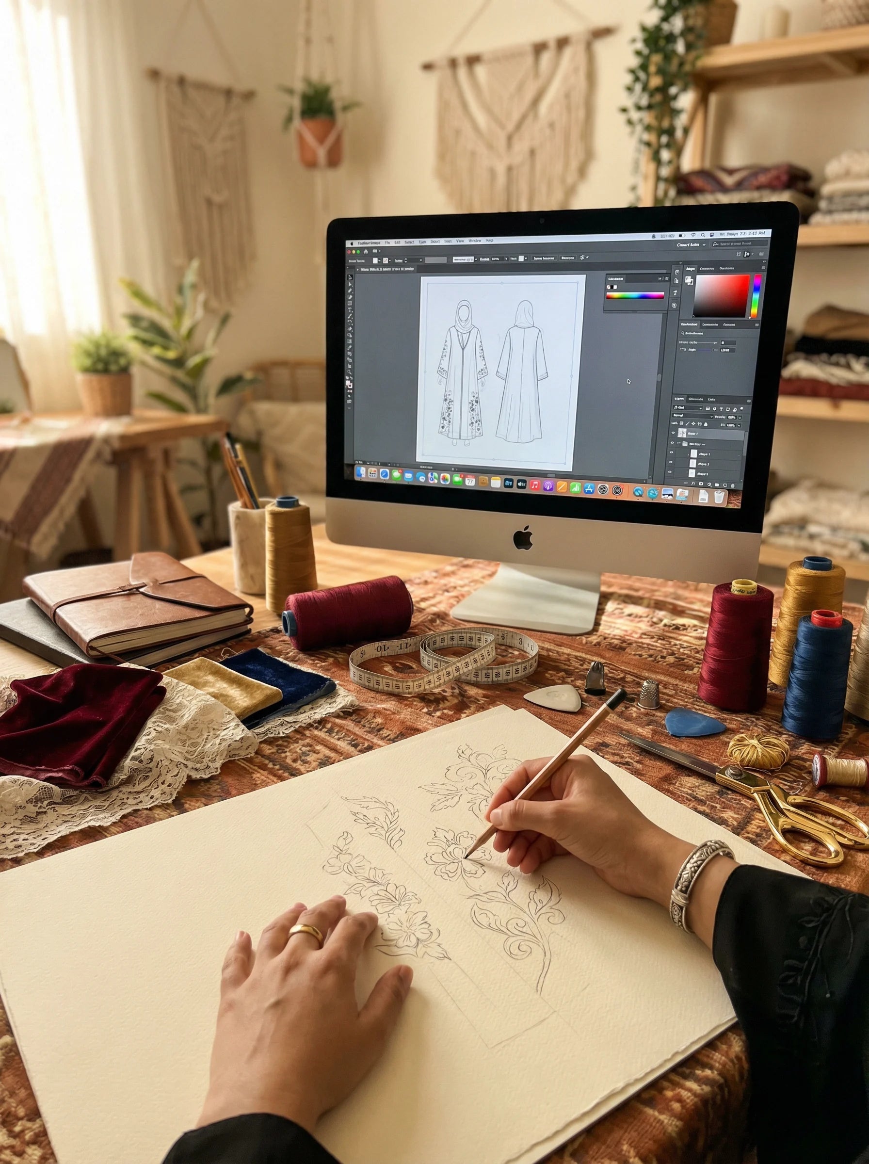 Inspired by heritage, art, and modern tailoring, our designs are shaped with discipline and creativity — creating abayas that feel timeless yet unmistakably contemporary.