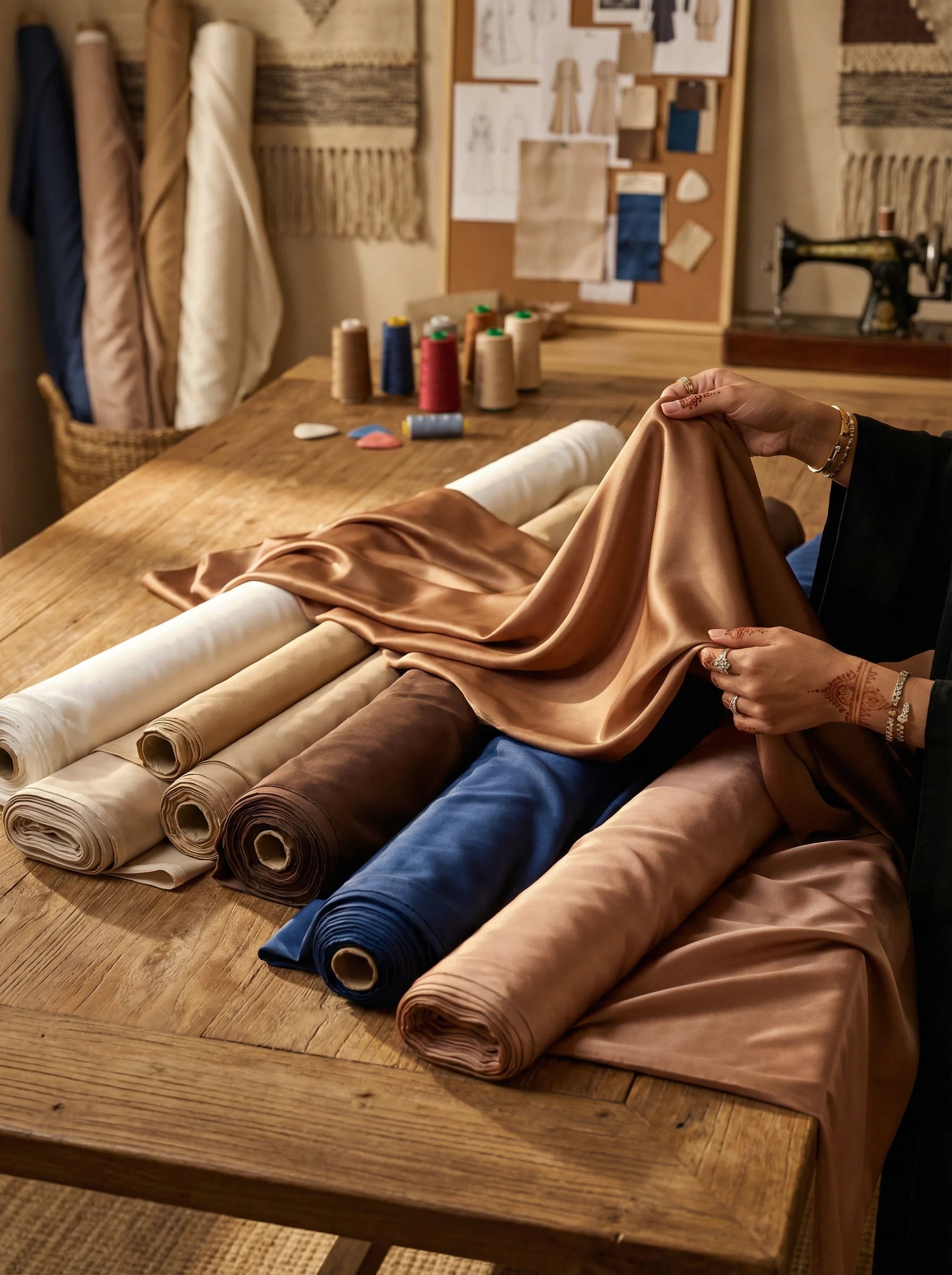 Every fabric is chosen for its character, every stitch placed with purpose. Crafted in the UAE, our pieces reflect patience, precision, and the beauty of hand-finished detail.