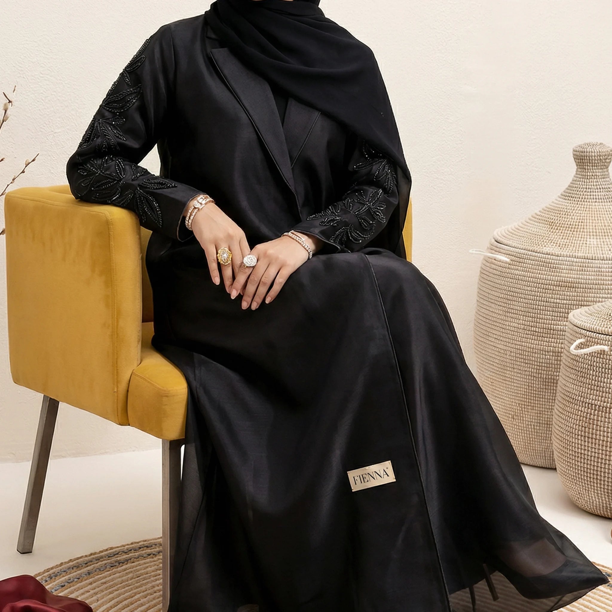 Fienna is a Dubai-based fashion house devoted to reimagining the abaya through a lens of contemporary refinement. At its heart lies a commitment to modesty, heritage, and design integrity. Each piece reflects a balance of cultural reverence and architectural precision — where bold lines, structured cuts, and hand-embellished details speak quietly of strength and elegance.